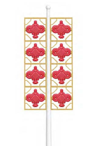 產(chǎn)品型號(hào):XDZM-10 外形尺寸:640x2580x100mm 主要材質(zhì):PETG+ 鐵 光源/ 功率:LED MAX 8x15W 主要顏色:紅色(燈籠)+ 黃色(蓋+ 流蘇)+ 白色(鐵支架)
